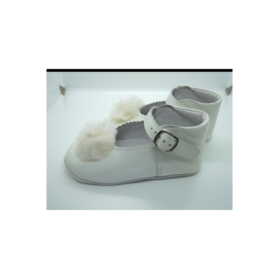 Borboleta White Patent Mary Jane with Pom Pom